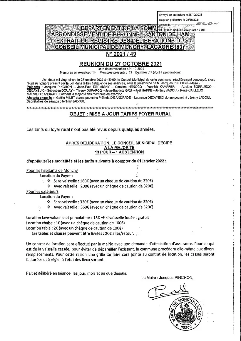 Les utilisateurs du foyer rural doivent impérativement suivre le règlement du contrat de location, à savoir: